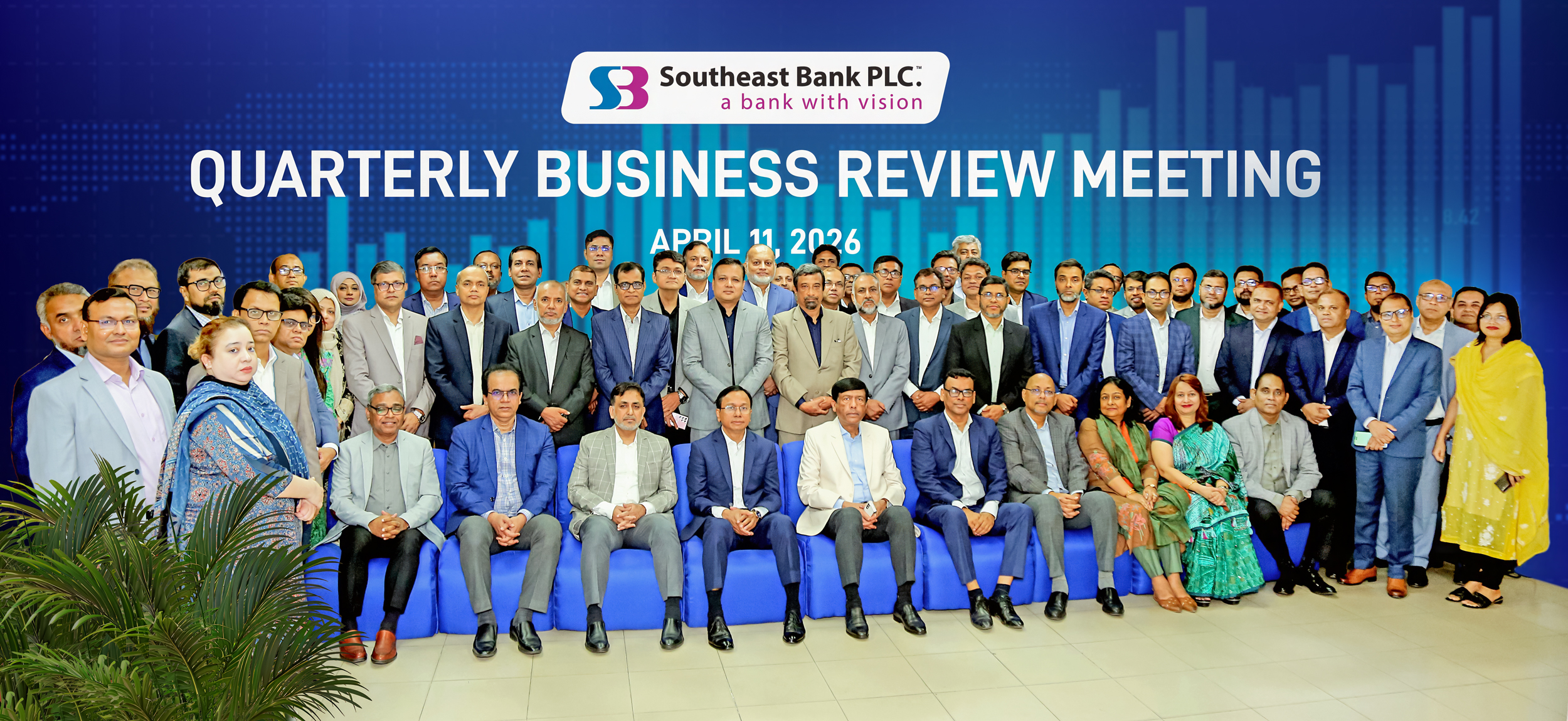 সাউথইস্ট ব্যাংক পিএলসি. আজ শনিবার ( ১১ এপ্রিল) ব্যাংকের ট্রেনিং ইনস্টিটিউটে, ঢাকা রিজিওনের ৩৭ জন শাখা ব্যবস্থাপককে নিয়ে ত্রৈমাসিক ’বিজনেস রিভিউ মিটিং’ অনুষ্ঠিত হয়েছে। উক্ত মিটিংয়ে সাউথইস্ট ব্যাংক পিএলসি’র ব্যবস্থাপনা পরিচালক এবং প্রধান নির্বাহী কর্মকর্তা মো. খালিদ মাহমুদ খান সভাপতিত্ব করেন।